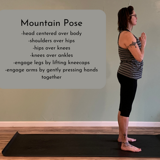 Mountain Pose -(exhale) as you bring your hands into prayer pose at your heart center